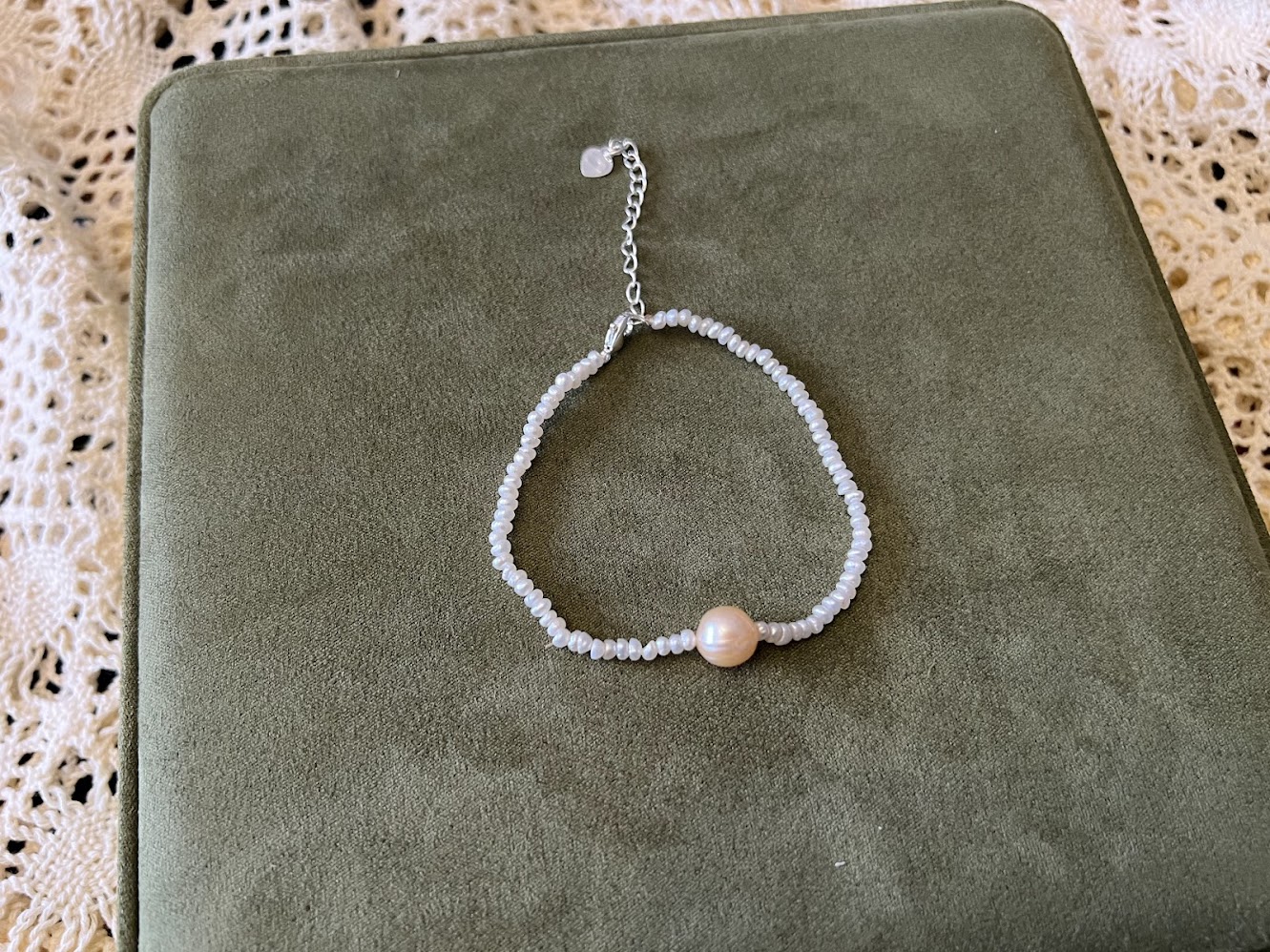 Discover the beauty of simplicity with our Single Pearl Silver Bracelet—a refined piece that speaks volumes through its quiet elegance. Designed for those who appreciate subtle sophistication, this bracelet features a single, luminous freshwater pearl delicately suspended on a fine sterling silver chain. It’s a timeless accessory that complements any style, from casual to formal, without ever demanding attention.